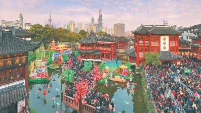 逛庙会日益成为新年俗。图为上海城隍庙庙会。光明图片/视觉中国