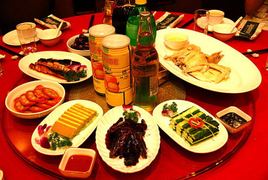 在中国,年夜饭中鸡的种类繁多大大超过了只有烤火鸡的感恩节的年夜饭,鸡的做法甚至达到上百种,包括白斩鸡、叉烧鸡、三杯鸡、辣子鸡、鸡公煲、啤酒鸡、口水鸡、叫化鸡、花雕鸡、香菇鸡、麻油鸡、清蒸人参鸡,以及宫保鸡丁、脆皮鸡、香酥鸡和与烤火鸡相似的香烤全鸡等。
