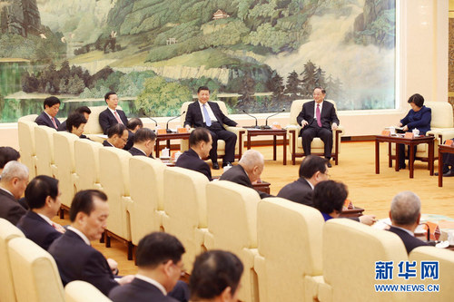 图为:2017年1月22日,习近平、俞正声、张高丽等在北京人民大会堂同党外人士欢聚一堂,共迎佳节。