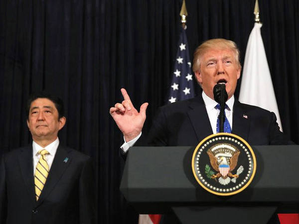 特朗普与安倍10日发表共同声明,把“抵御朝鲜导弹和核威胁”作为“重中之重”的事务。