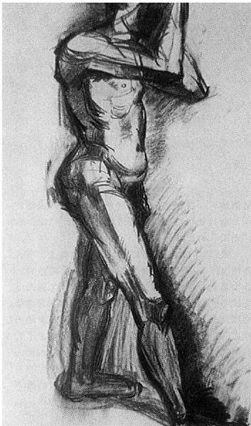 对学习者来说,力不会显现在形体表面,它是潜藏于形体内部的模糊存在,想掌握它就必须经过长期刻苦训练。一般说,初学时是不可能知道什么是“力”的,画静止对象也很难对这种存在于心理上的“力”有所感知。就个人学习体会说,是经过大量运动人体素描训练后才真正感知到生物性的“力”的存在,因此科学的、系列化的训练程序是必不可少的。通过理性分析与情感表现的结合,从画静止人体、研究几何结构和解剖结构,到最后能凭默写熟练画出正在运动中的人体,是德派素描教学中不可或缺的重要环节和高级阶段。在莱比锡画派诸多大师的作品中,每每可以看到对“力”的精彩表现(典型者如海森克的作品),但在中国流行的苏式素描训练中通常只重视对“形”的模拟而忽视对内在“力”的表达。有没有对“力”的捕捉和表现,也是德苏两派素描训练体系的重大区别之一。