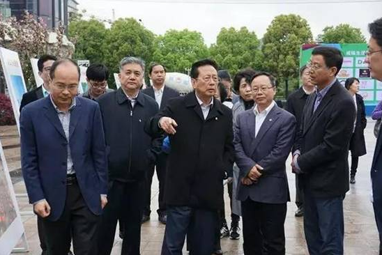 2016年4月6日至9日,陈昌智带队就民建中央重点调研专题“关于培育新生中小城市的调查研究”在浙江省嘉兴、绍兴诸暨、金华义乌、温州调研。图为4月7日,陈昌智主席在诸暨市店口镇考察城市化建设。