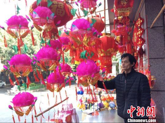 周永明正在检查自己制作的花灯是否有破损,确保卖给顾客的花灯是完美的?!』蒲┝帷∩?/span>