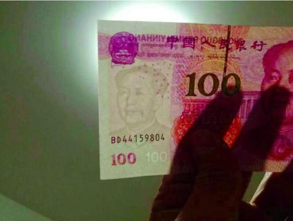 据刘先生介绍,他于正月初三在家附近的浦发银行网点ATM机上取了10张百元钞票,当时并没有留意到有一张钞票“与众不同”,“一般大家用钱的习惯都是把最新的钞票留着最后用,这张新版土豪金的百元错币很新,所以一直留着没用。10日那天我在家也是一时心血来潮,就仔细观察剩下的几张百元钞票,发现有几张连号,看着看着,我惊奇地发现,其中一张编号为BD44159804的百元钞票上,毛主席水印中,嘴角左侧多了颗‘痣’,非常明显。我又看了看其它的百元钞票,都是正常的?!?/p>