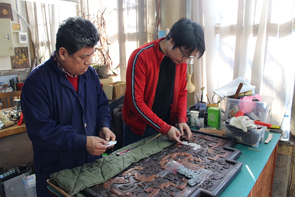 史连仓和徒弟谢扬帆在进行修复工作