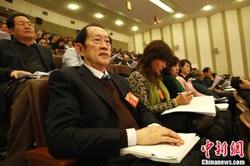 资料图:王立群应邀参加河南省十二届人大一次会议. 中新社发 王中举 摄