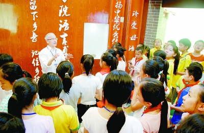 2016年5月18日,邓玉荣向来贺州学院语言博物馆参观的学生介绍岭南方言。廖祖平摄/光明图片