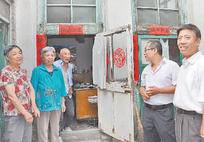 2016年7月,乔全生(右一)在山西祁县调查点发音人家里实地考察现场搭建的录音场所。照片均由受访者提供