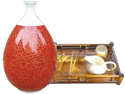 左:传承人1+1创新作品(河北邢窑:张志忠+徽州菠萝漆:俞均鹏)