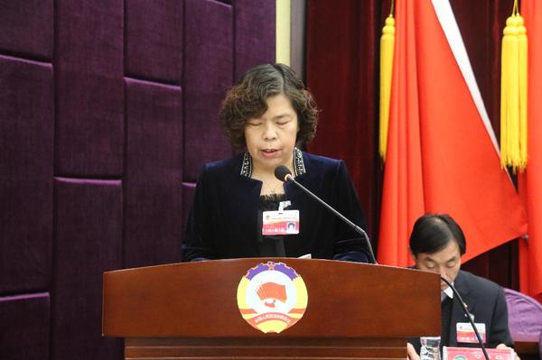 任芳向大会报告政协八届六次会议以来共收到提案105件,全部予以立案,立案率为100%。这些提案中,委员个人提案96件,联名提案9件,共涉及31个承办单位,截至2016年底,已全部办复。