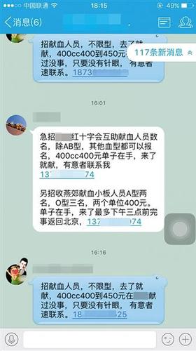 某“血头”在QQ群中发布“有偿献血”招募信息。资料截图