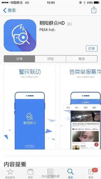 2月13日晚上,北京市公安局朝阳分局官微@平安朝阳 发微博称,朝阳警方会同相关单位研发的“朝阳群众HD”APP已上线测试?!俺羧褐凇北煌严烦莆澜缤跖魄楸ㄗ橹?,因参与破获多起明星吸毒等大案、要案被众多网友熟知。近日,一款名为“朝阳群众”的APP悄然上线引发关注。记者下载该APP发现,使用该软件需要用手机号码注册。注册后发现,页面分为“要案”、“寻人”、“招领”、“嫌犯”和“车辆”等多个版块。此外,该软件还内置“热心举报”功能,点击后可出现“儿童拐卖”、“疑似嫌犯”、“老人走失”、“肇事违章”、“遗失招领”和“其他举报”的分类,可通过小视频、拍照和文字进行相关“举报”。