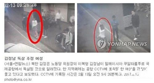 据《韩联社》报导,马来西亚警方公布的监视器画面中,杀害金正男的特工疑似为年轻女性,短头髮、身穿白色上衣,下半身穿着因画面模煳而较难辨识,整体造型与一般旅客相似,背着背包站在机场外面,似乎是在等待些什么。目前仍在进行调查。