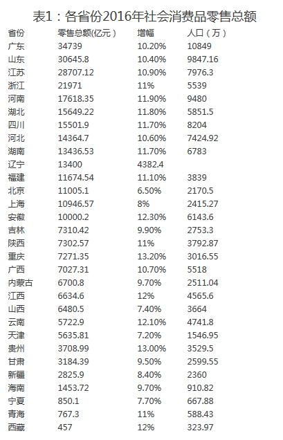 经济发展阶段的不同,也是消费增速快的一大重要原因。老家重庆的广东省体制改革研究会副会长彭澎对第一财经分析,与东南沿海京沪浙粤等发达地区相比,西南的重庆、贵州等地仍处于经济起飞阶段,城镇化率快速提高,这个过程中就会产生大量消费需求,如购买家具、家电、装修等。这些省份的人均消费水平不高、基数低,因此只要增量大,消费增速就会上得很快。