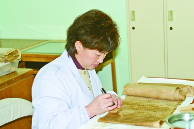 修复师胡玉清在修复敦煌遗书。图片由国家图书馆提供