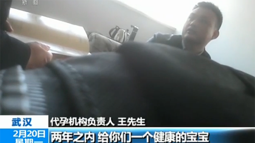 代孕机构负责人 王先生:包成功,简单一点,就是我们在2年之内,给你们(生)一个健康的宝宝,到时候抱孩子就完事了,不管出什么情况,比如说到时候孩子畸形呀,不健康呀,这些情况,通通我们来处理。