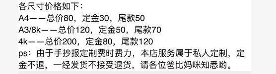 据淘宝上一些代做手抄报的店铺信息显示,手抄报代做要价根据尺寸不同略有差距。有卖家表示,可针对不同性别、不同年级提供定制化服务,“比如说,给女孩子画,我们会选取粉色系等一些活泼的色调?!?/p>