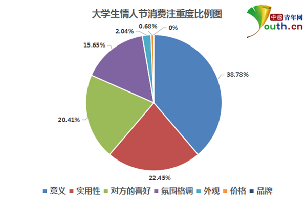 图为大学生情人节消费注重度比例图。中国青年网实习记者 李华锡 制图