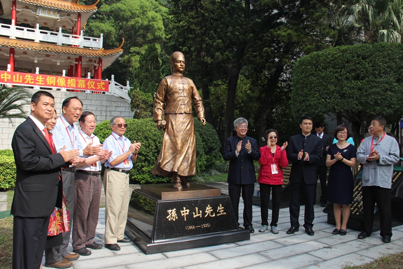 2016年11月19日,丘树宏与孙中山先生曾孙孙国雄(左五)等在中山市小榄凤山公园内为孙中山先生铜像揭幕。