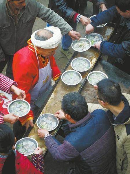 这天的乡宴上,18道菜都是陈长发老人打盆送到餐桌旁,整个传菜过程不到20分钟。每逢过年过节,红白喜事,老人都很忙,乡里乡亲要摆宴席的都想请他来秀一把。
