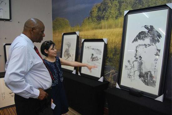 现场观展的人络绎不绝,展出的画作引起了当地观众的格外关注,一个画题虽不能代表一种文化,却能从独特的角度展示东方文化的魅力,使艺术获得更深刻的内涵。高晓舟表示,此次展出的画作是自己在博茨三、四年的创作积累和发自内心的体会,希望此次绘画作品的展出能够让当地人看到并了解中西绘画上的不同与差距,进而促进中非文化交流。