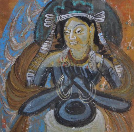 艺术家高晓舟旅居博茨瓦纳多年,毕业于南开大学东方艺术系,师从赵均先生。此次参展的绘画作品共22幅,作品多为水墨花鸟小品,亦涵盖敦煌题材的水墨作品,其中,最大的一幅作品名为《天使之泪》,尺寸2.3x1.8米,结合了中西绘画技巧。