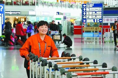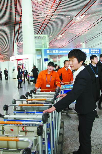 事儿虽然过去了,但是,这份在航站楼里既平凡又琐碎,经常被人忽视,却任谁又都离不开的工作,进入我们的视线。做手推车行李员非常辛苦。在T3航站楼负责手推车整理工作的有350多人,他们分3个班组,每个班组按指定路线将车运送到行李车摆放点,高峰期平均每人一天推1000辆行李车,每人每天在航站楼里的步行数至少10公里。
