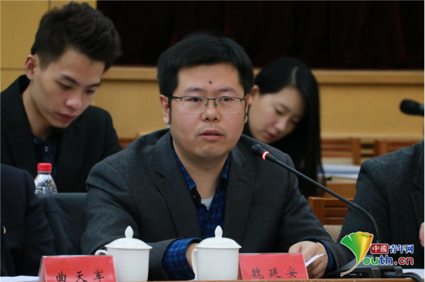 共青团陕西省委农村青年工作部部长魏延安在座谈会上发言。中国青年网记者 张群 摄