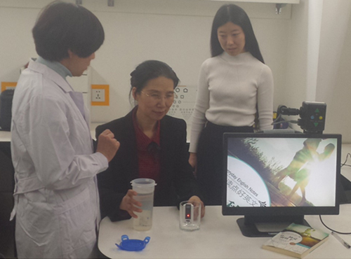 杨佳重点参观了视力评估室,亲自体验使用了台式电子助视器、防溢报警器、计量油壶等视力类辅具样品,并就新辅具政策、“互联网+辅助器具服务”运行模式、辅具综合平台、辅具购买目录产品等有关内容进行了深入交流。