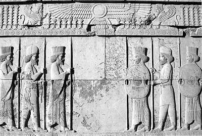 波斯波利斯皇宫觐见厅基台上士兵的浮雕