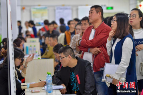 资料图:2017年2月8日,2017年海南省新春首场特大型招聘会在海南省人力资源市场举行,吸引了众多求职者前来入场求职。中新社记者 骆云飞 摄