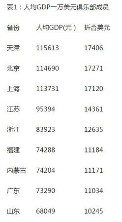 原标题:人均GDP比拼:9省超1万美元,广东少于内蒙古