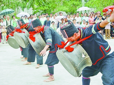 击鼓而舞,伴舞而歌。千百年来,铜鼓与当地各民族生活紧密联系在一起,形成了独特的铜鼓文化。