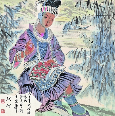 《苗家绣女》 张仃 68×68厘米 20世纪60年代 配图由中国美术馆提供