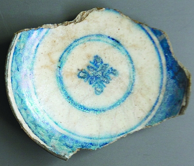 更有意思的是,我们在一个伊斯兰时期灰坑出土了一件青花瓷碗。青花瓷是我国元朝创烧的瓷器,其青花就是伊朗进口的钴料烧成的,在明清时代大量出口到欧洲。伊朗曾经属于蒙古帝国的伊尔汗国,青花瓷器也自然大行其道。不过,伊朗人并不满足于从中国进口青花瓷,而是开始仿烧青花瓷,15世纪更为普遍。这次发现的青花瓷碗就是一件仿烧品,碗的造型和花纹都有意模仿中国产品,但是技术没有学到家,花纹简单而且模糊。其实在伊朗历史上,这不是第一次学习中国的陶瓷技术:在11和12世纪,伊朗人就从中国宋代的单色瓷吸收灵感,烧出了光泽油亮的釉陶。