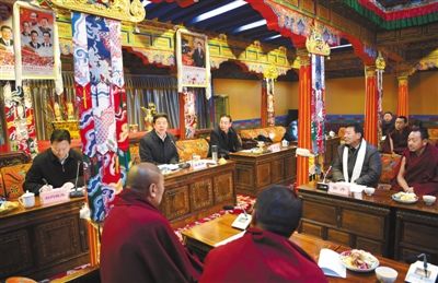 哲蚌寺管委会主任云丹、大昭寺管委会常务副主任拉巴先后发言,衷心感谢自治区党委、政府制定出台了好政策好措施,极大改善了广大僧尼的修行生活条件,维护了藏传佛教的正常秩序。大家一致表示,坚决拥护以习近平同志为核心的党中央的领导,继承弘扬藏传佛教优良传统,坚决反对分裂,自觉维护祖国统一和民族团结,与各族人民群众一道,把全区安定团结、和谐稳定的局面维护好、巩固好。