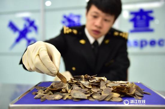关键词:浙江义乌 海关 海外入境象牙 穿山甲鳞片