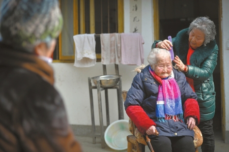 105岁的梁学华,是远近闻名的老寿星。2月28日,彭山阳光灿烂,7个子女聚到一起,给老妈妈摆了一顿酒席。