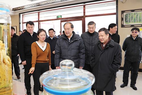 会前,2月17日赵暘副主委还随同省政协主席黄燕明,港澳台侨和外事委员会主任任克军,副秘书长肖模文等政协领导先后到白山、通化进行专题调研。调研组考察了抚松县吉林利生生物科技有限公司,长白山野山参博物馆,抚松薪三宝参茸开发有限公司,通化市百泉参业集团股份有限公司,通化县快打人参交易市场。深入企业生产车间、产品展示大厅进行实地考察,并与企业及项目负责人亲切交流,详细询问企业生产经营销售情况、人参产品加工工艺、价格、市场前景和当地人参品牌建设及产业发展现状等,同时还进一步了解企业发展和项目进展过程中遇到的困难和问题,以及未来发展规划。