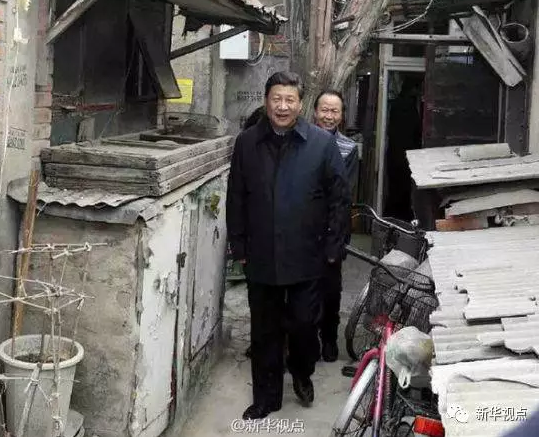 这是2014年2月,习近平在北京考察工作,走进雨儿胡同一个大杂院的场景。