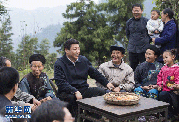 2013年11月3日至5日,中共中央总书记、国家主席、中央军委主席习近平在湖南考察。这是3日下午,习近平在湘西土家族苗族自治州花垣县排碧乡十八洞村同村干部和村民座谈。新华社记者王晔摄