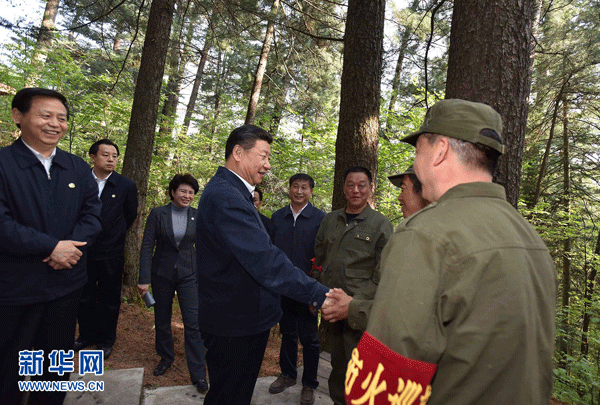 2016年5月23日至25日,中共中央总书记、国家主席、中央军委主席习近平在黑龙江考察调研。这是5月23日下午,习近平在上甘岭林业局溪水国家森林公园视察时,叮嘱林场工作人员一定要把森林资源?;ず?。 新华社记者 李涛 摄