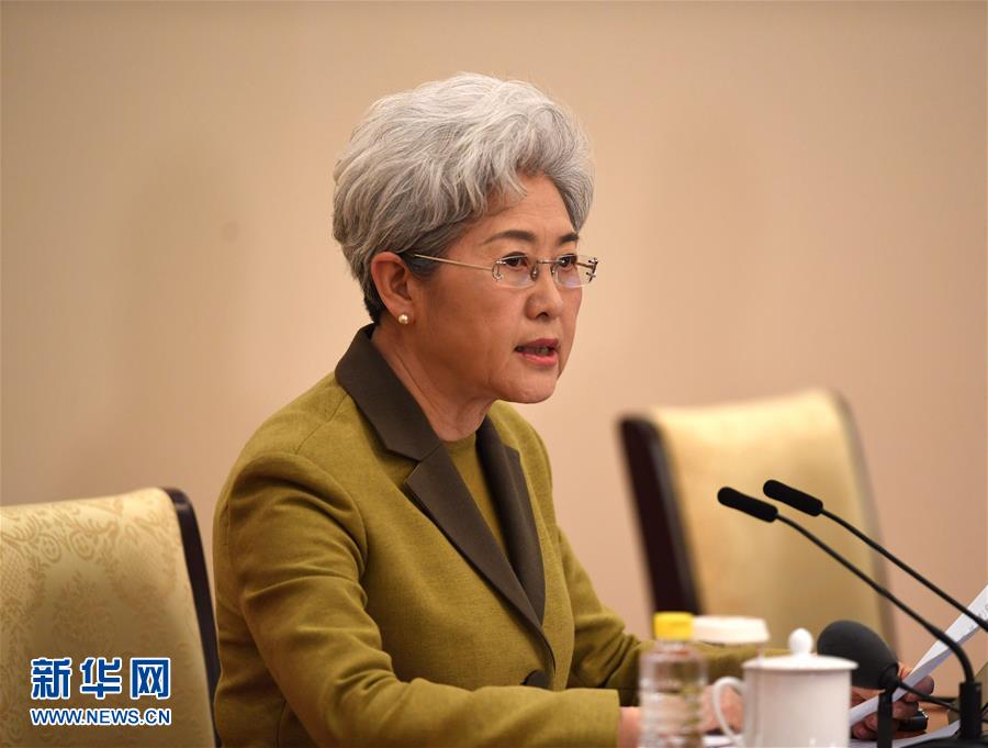 3月4日,十二届全国人大五次会议在北京人民大会堂举行新闻发布会。大会发言人傅莹就大会议程和人大工作相关的问题回答中外记者的提问。新华社记者 陈晔华 摄 (2)