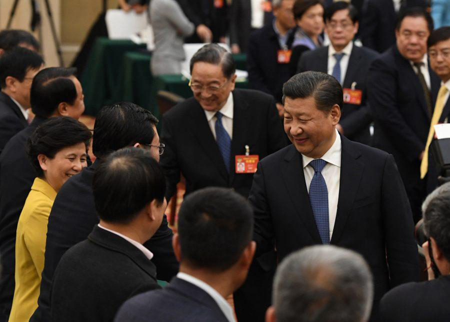 3月4日下午,习近平总书记看望出席全国政协十二届五次会议民进、农工党、九三学社政协委员并参加联组会。