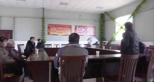 为了帮助戴老太,记者和戴老太、吴阿姨以及戴老太的三儿媳、小儿媳,一同来到了戴老太老家所属的村委会。村干部请来了戴老太的大儿子,戴老太的二儿子说在外有事,没有出现。一家人坐到一起,就戴老太今后的赡养问题进行了协商。