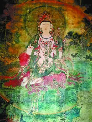 法海寺的文殊菩萨,照片拍自药师殿内,为珂罗版技术复制的壁画