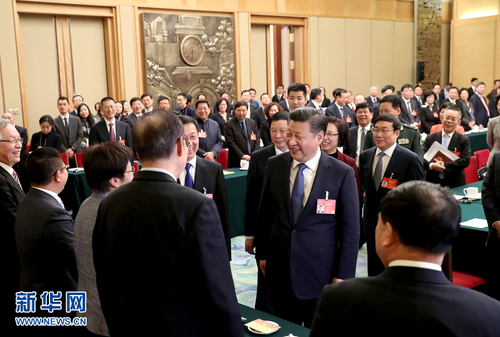3月4日下午,中共中央总书记、国家主席、中央军委主席习近平看望参加全国政协十二届五次会议的民进、农工党、九三学社委员,并参加联组会,听取意见和建议。中共中央政治局常委、全国政协主席俞正声参加看望和讨论。新华社记者 鞠鹏 摄