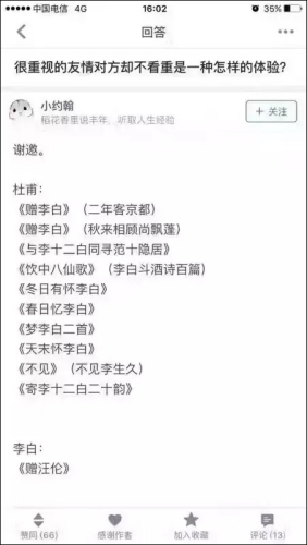 “很重视的友情对方却不看重是一种怎样的体验?网友:大概就是杜甫对李白的感觉吧……”近来,李白和杜甫因为这样一个问题在社交媒体上“火”了起来。