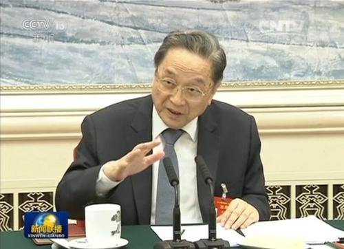 中共中央政治局常委、全国人大常委会委员长张德江,中共中央政治局常委、全国政协主席俞正声,中共中央政治局常委、中央书记处书记刘云山,中共中央政治局常委、国务院副总理张高丽,今天(8日)分别参加了十二届全国人大五次会议一些代表团的审议。