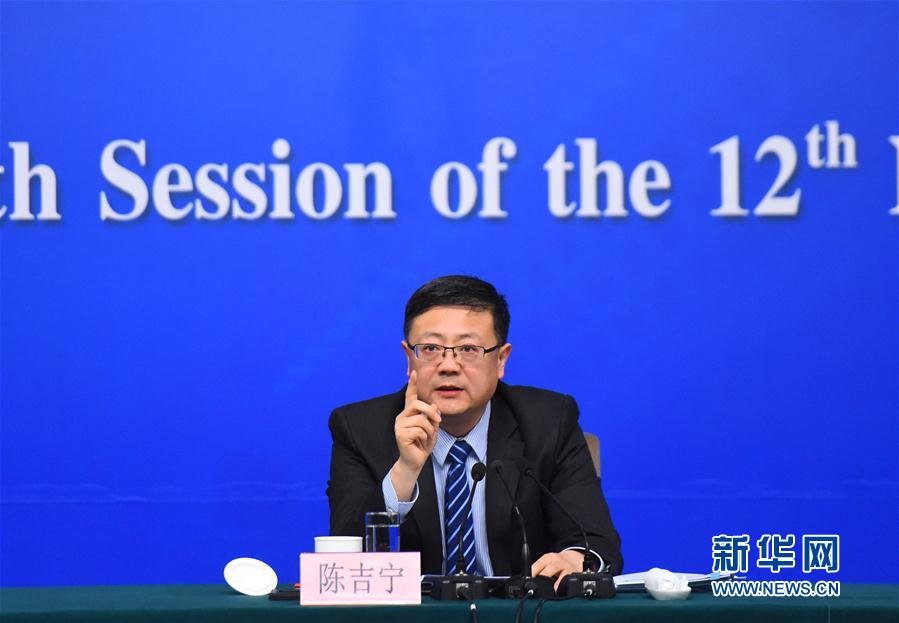 3月9日,十二届全国人大五次会议新闻中心举行记者会,邀请环保部部长陈吉宁就“加强生态环境?;ぁ钡南喙匚侍饣卮鹬型饧钦叩奶嵛?。这是陈吉宁在回答记者提问。新华社记者 陈晔华 摄